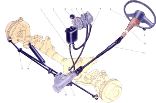 轉向系統是由轉向操縱機構、轉向器、轉向傳動機構組成。